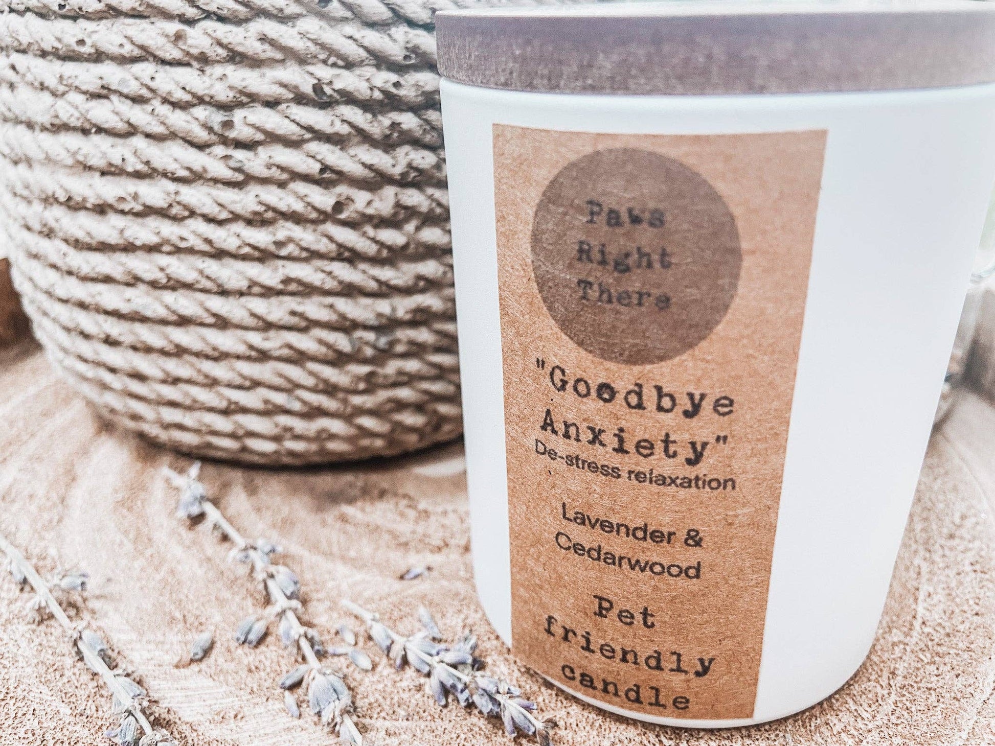 Our "Goodbye Anxiety" pet friendly candle offers the ULTIMATE relaxation for you and your dog. The floral notes of lavender teamed with the warm anchor of cedarwood is a winning combination. 45-50 hour burn time - Jar Fully CLP certified.