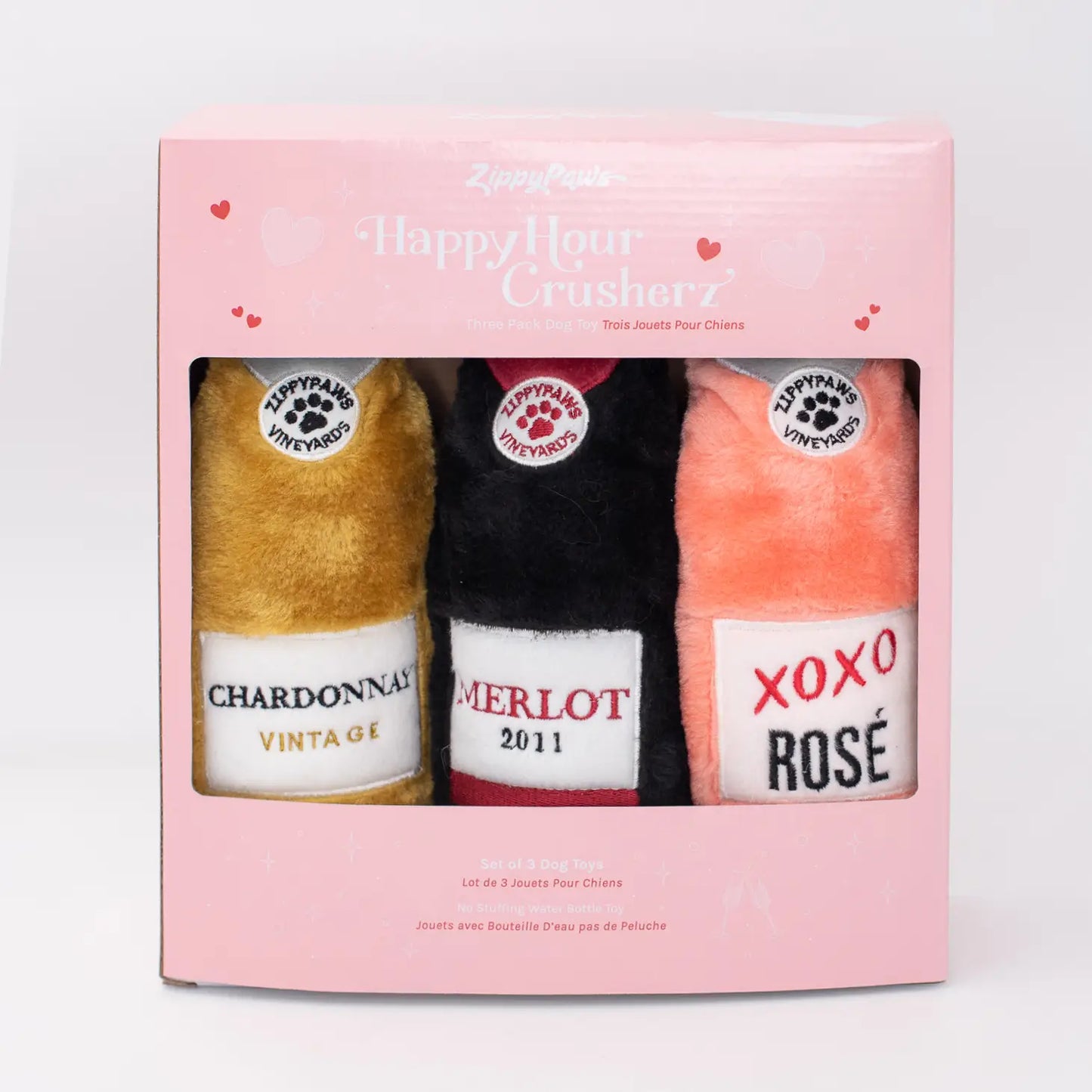 Make Happy Hour last all season with these festively fun, crunchable holiday-themed Happy Hour Crusherz dog toys! Each toy includes one empty water bottle, along with a squeaky cap! Save and reuse the included squeaky cap when switching out plastic bottles to keep the party going!