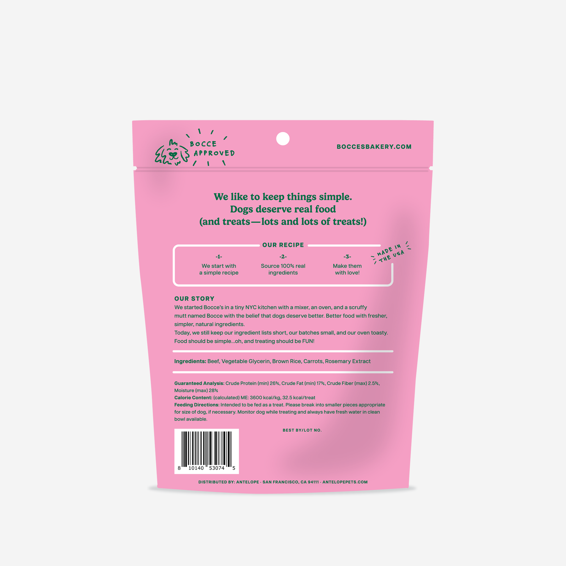 Ingredients: Beef, Vegetable Glycerin, Brown Rice, Carrots and Rosemary Extract