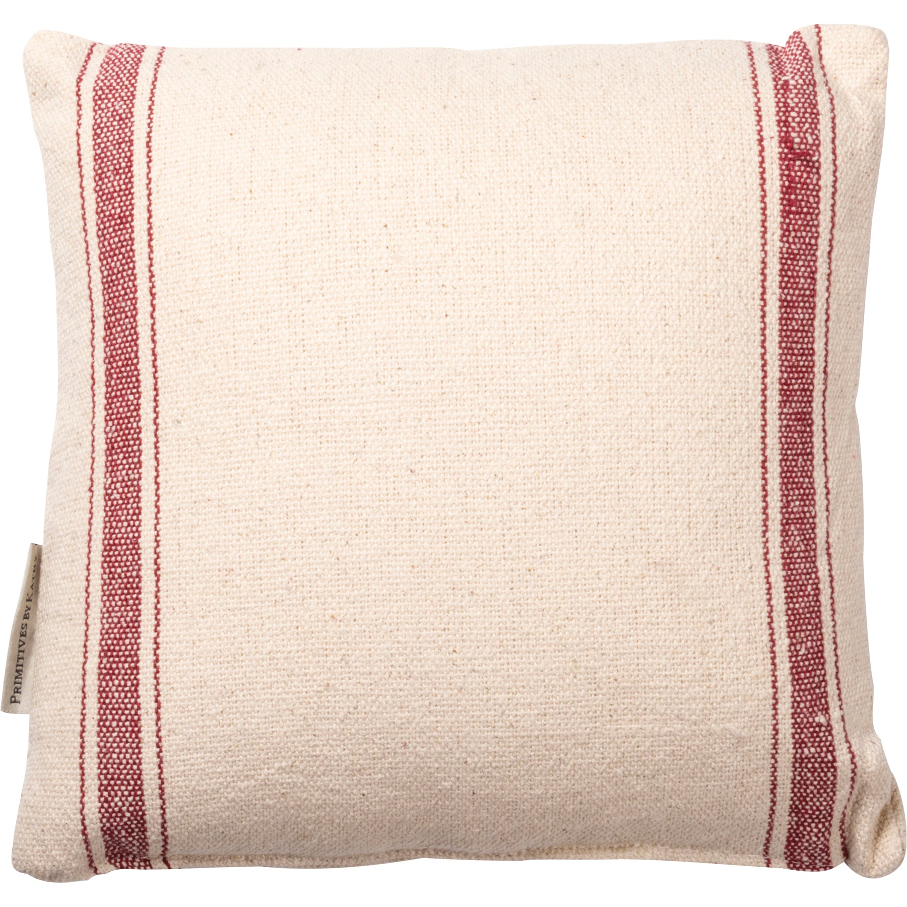 A cotton and polyester pillow featured a distressed "Home Of A Spoiled Rotten Dog" sentiment with striped trim designs. Includes a zipper to easily remove and clean cover.