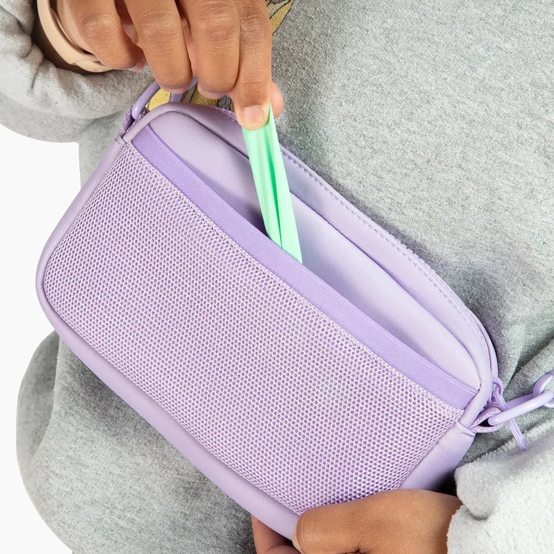 The everyday bag for dog parents is here! We added a hidden, built-in poop bag dispenser for incognito cleanups, plus an interior “treats” pocket to keep crumbs from getting, well, everywhere else! Made from durable, water repellent neoprene, this bag’s not just easy to care for, it’s cute too. Plus, with an adjustable shoulder strap, and convenient exterior mesh pocket, it’s made to keep up with wherever you’re off to.