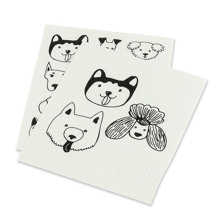 Stylish and sustainable, this set of 2 Simple Dog Faces Swedish Dishcloths are a reusable, eco-friendly alternative to sponges, paper towels or ordinary dishcloths. Made in Sweden, these ultra-absorbent dishcloths are soft enough to use on a baby's skin and tough enough to last for up to 12 months — replacing to up to 15 rolls of paper towels.